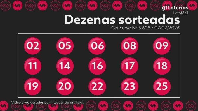 O sorteio da Lotofácil, concurso 3608, trouxe ótimas notícias para muitos apostadores. Confira os números premiados: 2, 5, 6, 8, 9, 11, 14, 16, 17, 18, 19, 20, 22, 23, 25.