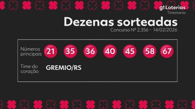 A Timemania realizou hoje o sorteio do concurso 2356, e os números sortudos já estão disponíveis! Para aqueles que estão na expectativa de conferir se vão levar algum prêmio, a lista com os resultados foi divulgada. E, claro, o Coxixo sempre traz as últimas atualizações sobre os ganhadores e as curiosidades desse jogo emocionante. Fique atento e boa sorte!
